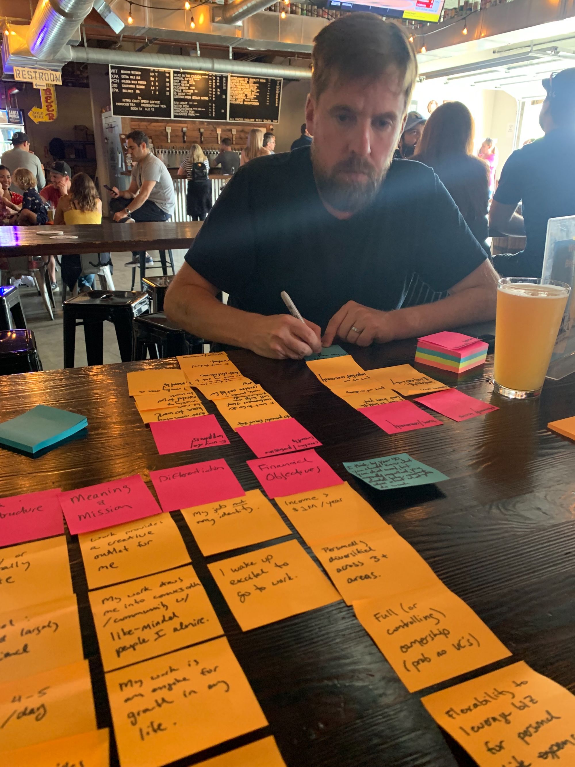 To make it fun, we headed to the Santa Monica brewery. Because I am a nerd for this kind of thing, we brought along a stack of multi-colored sticky notes and permanent markers. Yes, we brought brainstorming materials to the brewery!